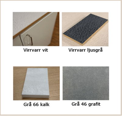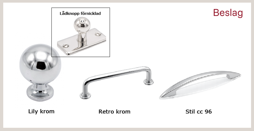 Luckorna finns i följande färger och tillhörande beslag/handtag.
